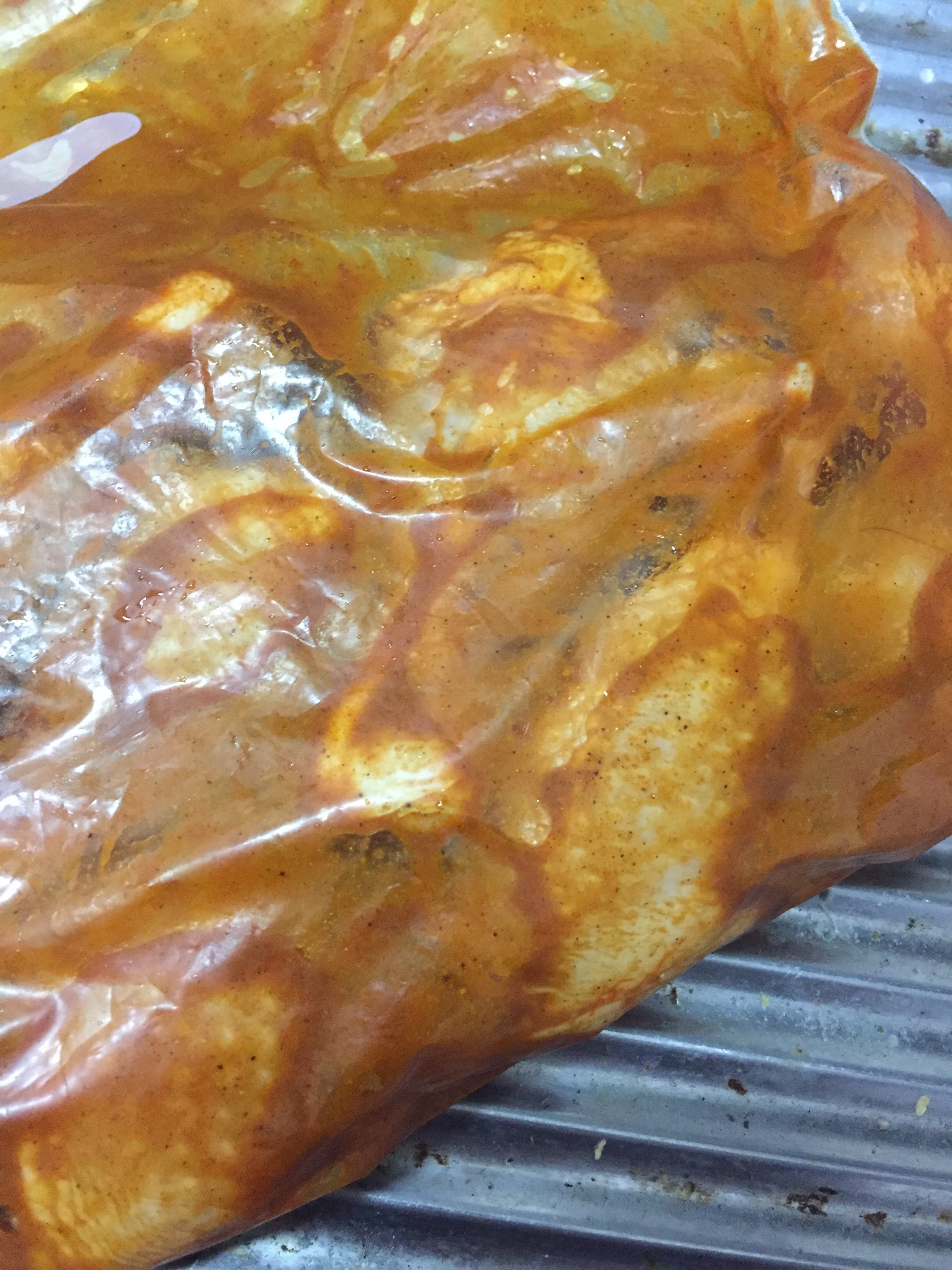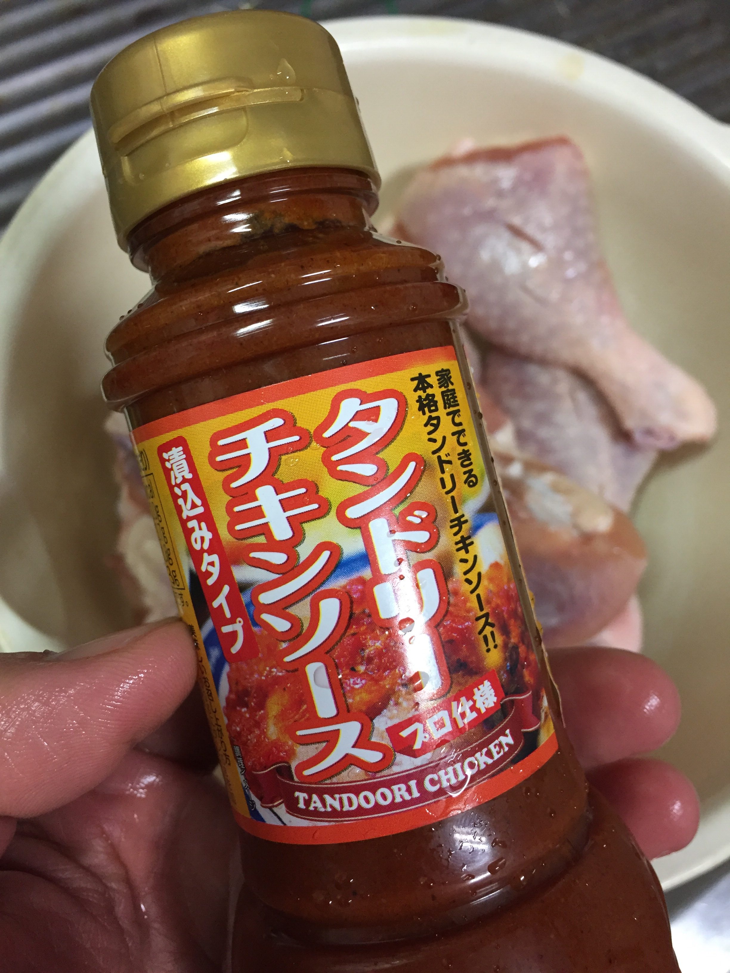 タンドリーチキンの下ごしらえは、家でやっておきます。