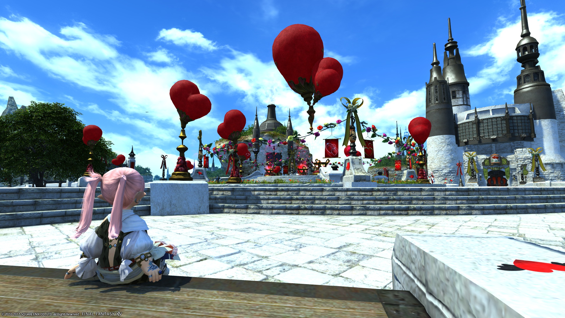 オルメカちゃんを待っている間、私は、ピンクに飾られたアフトカースル広場を見て回った。