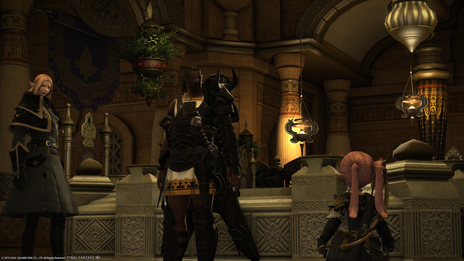 リムサ・ロミンサを出て、海を抜け、砂漠と荒野を進んで行った先に見えてきた、ウルダハの姿は、堅牢な城砦を思わせる高い城壁と、細部に拘った豪華な意匠、そして、遠くから見てもわかるほど活気に満ちた雰囲気に包まれていた。