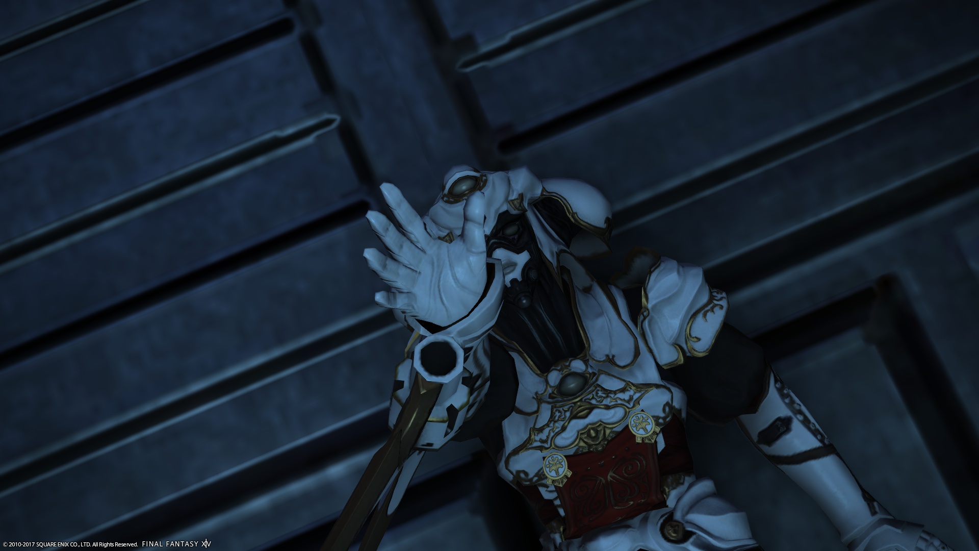 中空を見上げた仮面の隙間から、赤いものが流れ出ているのが見える。