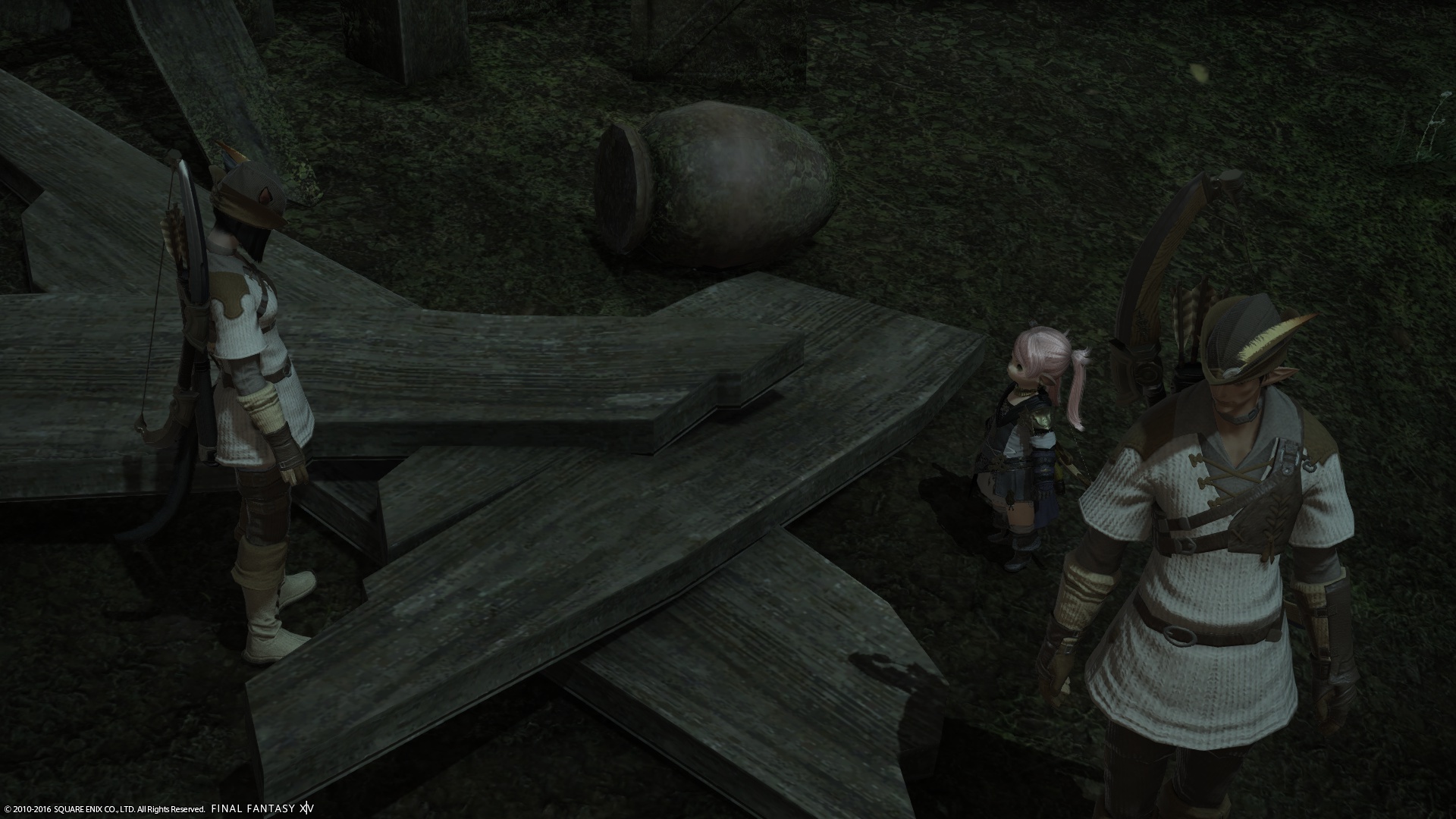 「見ろ、この床板の痕跡……。ミコッテ族のものだ。まだ新しい……」