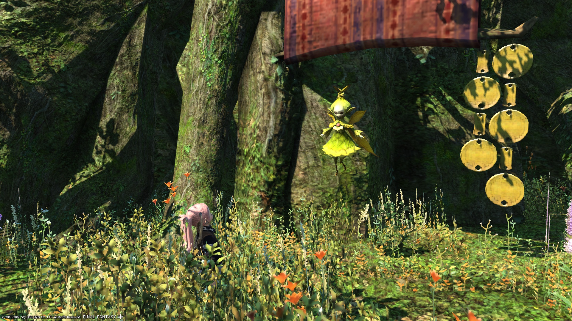 双蛇党からの依頼で、シルフ族の蛮神関係の動向を調査してほしいとの依頼で、東部森林の奥、シルフの仮宿と呼ばれる、シルフ族の集落へとやってきた私を出迎えたのは、強い警戒心と忌避感だった。