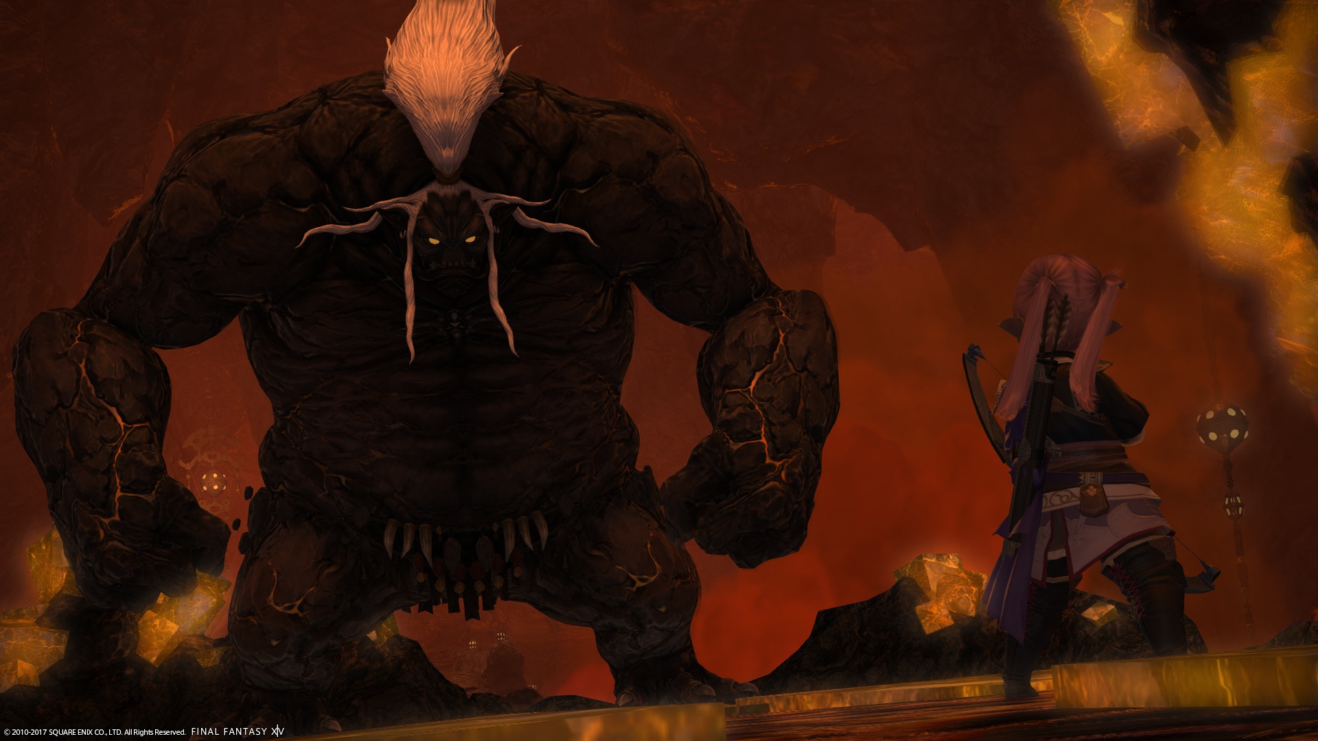 そして、コボルト族の祈りの声が最高潮に達した時、周囲のエーテルが一気に収縮し、溶岩の岩塊を一纏めにしたかと思った、次の瞬間、そこに、蛮神タイタンの姿が顕現していたのだった。