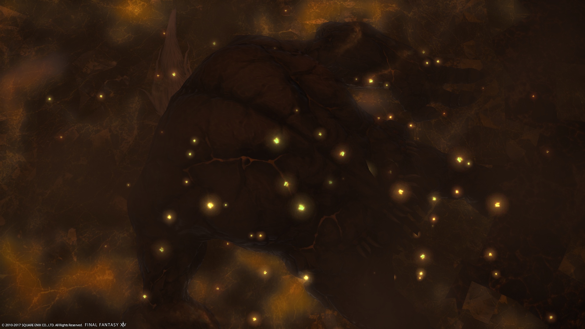 その直後に見えたのは、マグマに赤く照らされる、岩窟の天井だった。