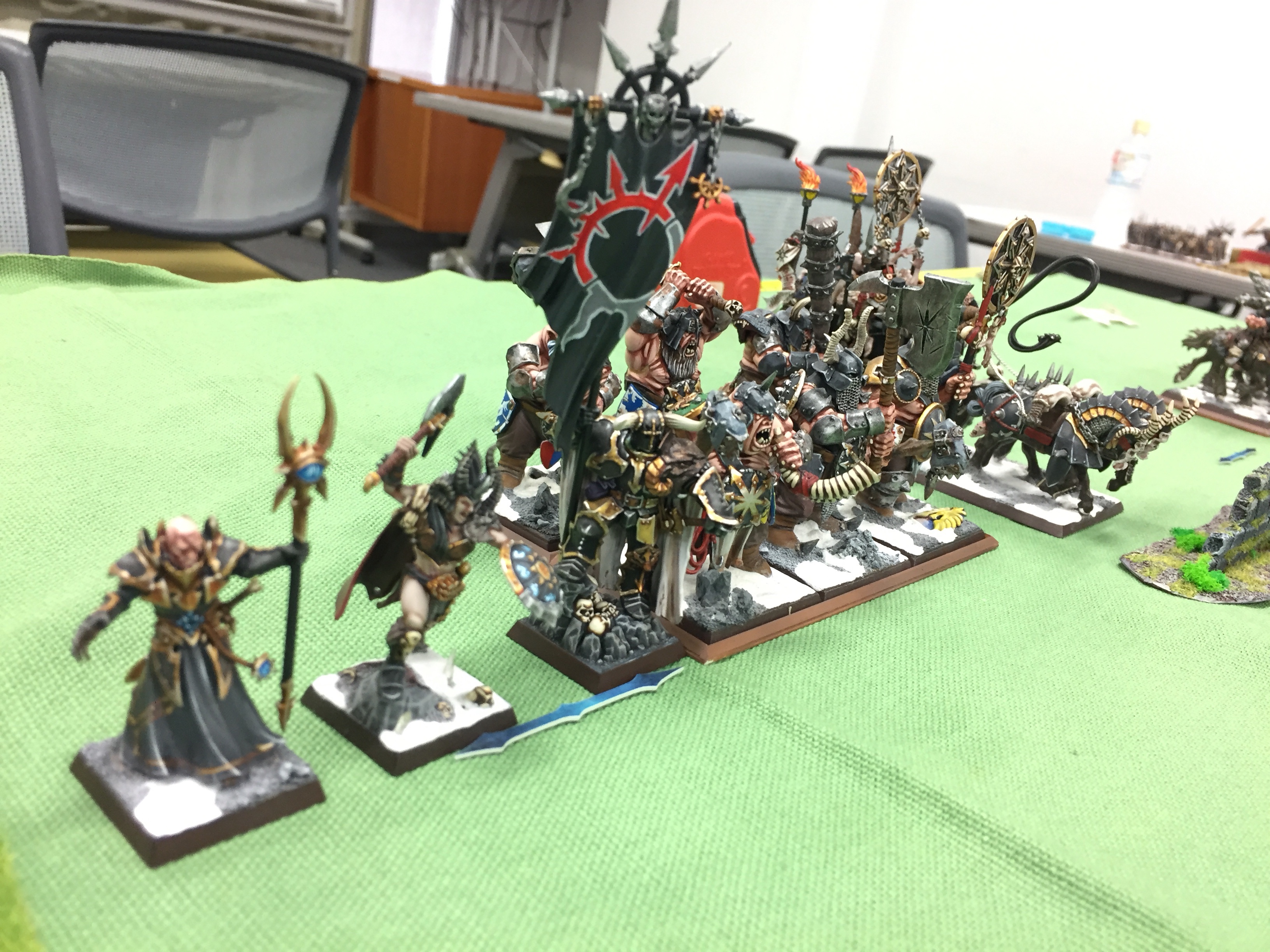 対戦カードは、オーク&ゴブリン vs ドワーフの2000ポイント戦、ヴァンパイアカウント vs ウォーリアーオブケイオスの1500ポイント戦の2カードでした。
